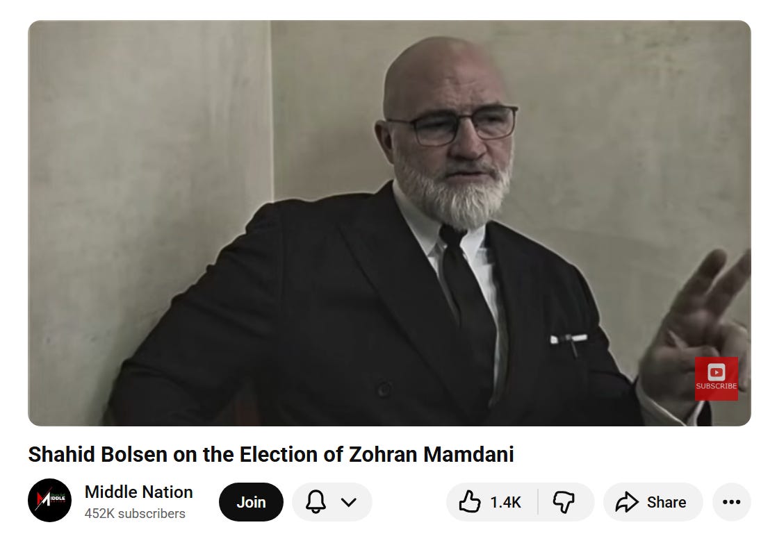 An interesting perspective from a Western convert to Islam, Shahid Bolsen. He criticises the deluded “Left” (and the “Right) for celebrating (and the Right for pointing to the Muslim bogeyman) the New York Mayoral victory of a supposed Muslim, Zohran Mamdani. He calls out how both sides of this staged political event are batting for the same side. This is why the MSM and fake “Alt” media is a stage, a Punch and Judy Soap Opera show, all leading towards Agenda 2030. See it for what it is. Everyone will own nothing and be “happy”.