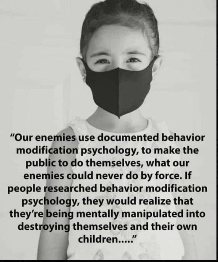 Make no mistake, when they masked you and they did not mask, they were torturing you and your children. If you cannot see that by now, then you are lost. Do not complain when they mask you and your children again, if you complied without complaint the last time.