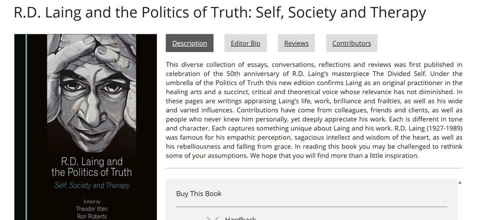 A paper I wrote is included in this new book. Originally published in a book called “R.D. Laing: 50 years since the Divided Self”. This is a new and updated edition with more contributors and new publisher.